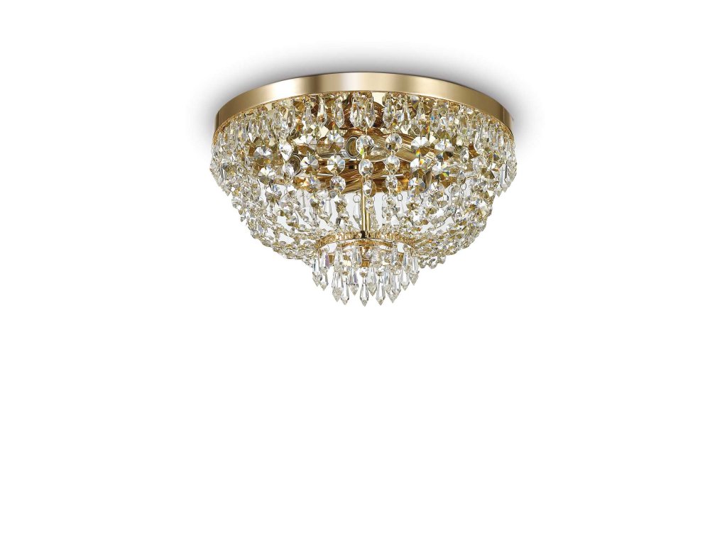 Závěsné svítidlo Caesar z kolekce designového osvětlení značky Ideal Lux v klasickém provedení v menší verzi s průměrem 41 cm je ideální volbou pro osvícení obývacího pokoje, jídelny či kuchyně. Díky svému luxusním designu skvěle zapadne do holetových a restauračních interiérů. Celé svítidlo je zdobeno čirými skleněnými závěsy s osmihranými křišťály a přívěsky ve tvaru rampouchů. Jeho rám je zhotoven z kvalitního kovu se zlatou povrchovou úpravou. Je osazeno paticemi G9 pro žárovky o maximálním příkonu 5 x 40 W. Součástí balení jsou LED G9 žárovky o příkonu 5 x 3 W se svítivostí 5 x 370 lm a teplotou chromatičnosti 3000 K. Krytí IP20 je vhodné pro vnitřní instalaci. Celkové rozměry svítidla činí 30 x 41 x 41 cm. Svítidlo je určeno k napájení ze sítě na 220-240 V.Doplňkové parametry
