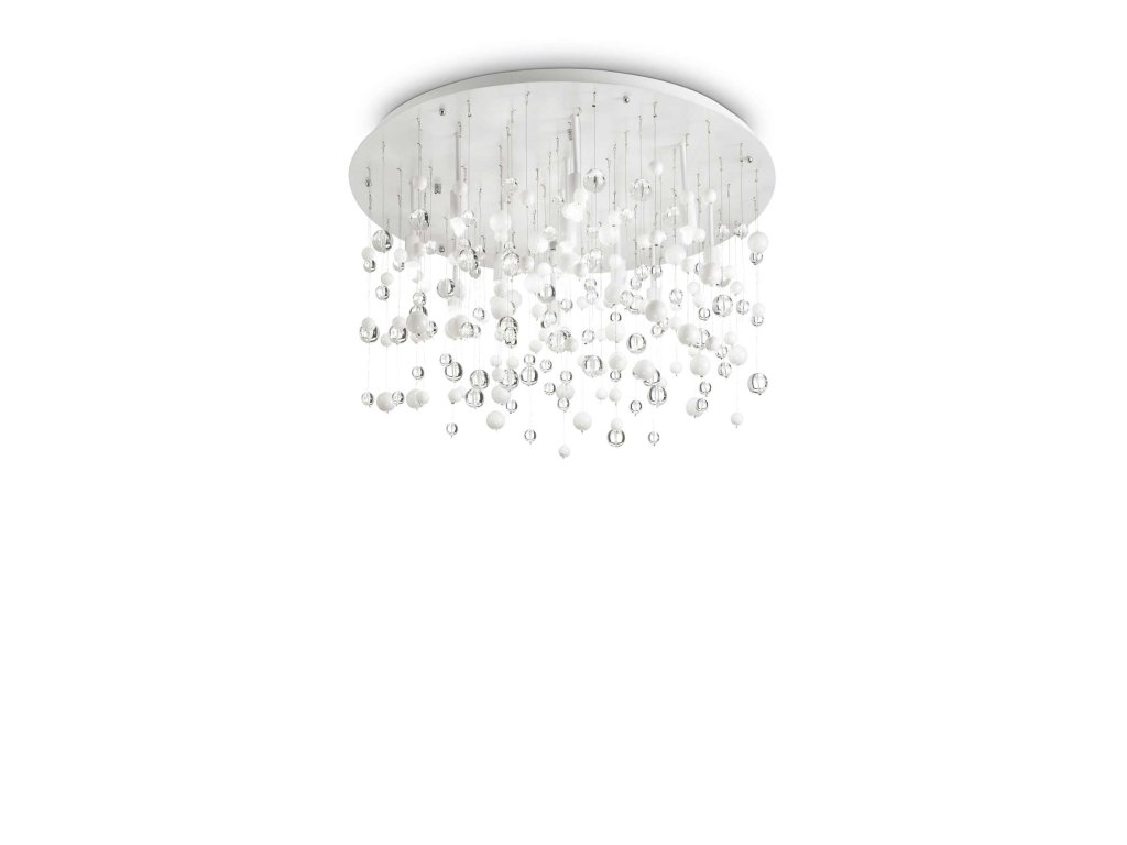 Stropní svítidlo Neve z kolekce interiérového osvětlení značky Ideal Lux v moderním provedení má zajímavě řešený design, který zaujme každou vaši návštěvu. Základna je zhotovena z kvalitního kovu s matně bílou povrchovou úpravou. Celý design tvoří dekorační závěsy se skleněnými kuličkami různých délek a velikostí v čiré a bílé barvě. Svítidlo je osazeno paticemi G9 o maximálním příkonu 12 x 40 W. Součástí balení jsou LED žárovky G9 o příkonu 12 x 3 W se svítivostí 12 x 370 lm a teplotou chromatičnosti 3000 K. Krytí IP20 je vhodné pro vnitřní instalaci. Celkové rozměry svítidla činí 31,5 x 63 x 63 cm. Je určeno k napájení ze sítě na 220-240 V a vztahuje se na něj prodloužená záruka 5 let.Doplňkové parametry