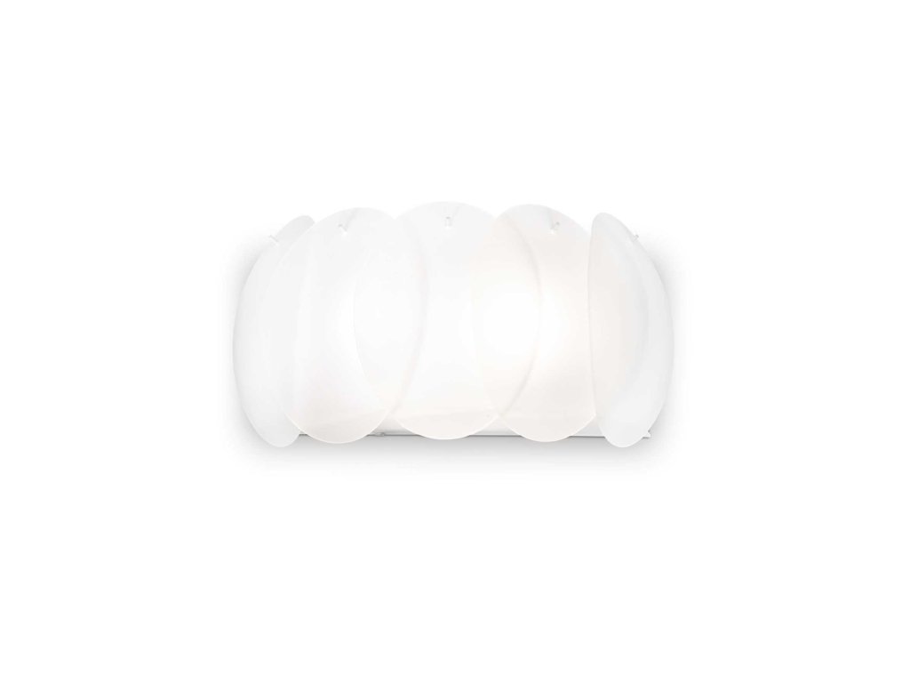 Nástěnné svítidlo Ovalino z kolekce interiérového osvětlení značky Ideal Lux v moderním provedení je vhodné jako dodatkové osvětlení v ložnici, obývacím pokoji, na chodbě či v předsíni. Skládá se z kovového rámu s bílou povrchovou úpravou doplněného o difuzor složený ze zaoblených kruhových tabulí zhotovených z matně bílého skla leptaného kyselinou. Svítidlo je osazeno paticemi E27 pro žárovky o maximálním příkonu 2 x 60 W. Zdroje nejsou součástí balení. Doporučujeme zvolit LED žárovky pro úsporu elektrické energie. Krytí IP20 je vhodné pro vnitřní instalaci. Celkové rozměry svítidla činí 17 x 34 x 18 cm. Je určeno k napájení ze sítě na 220-240 V.Doplňkové parametry