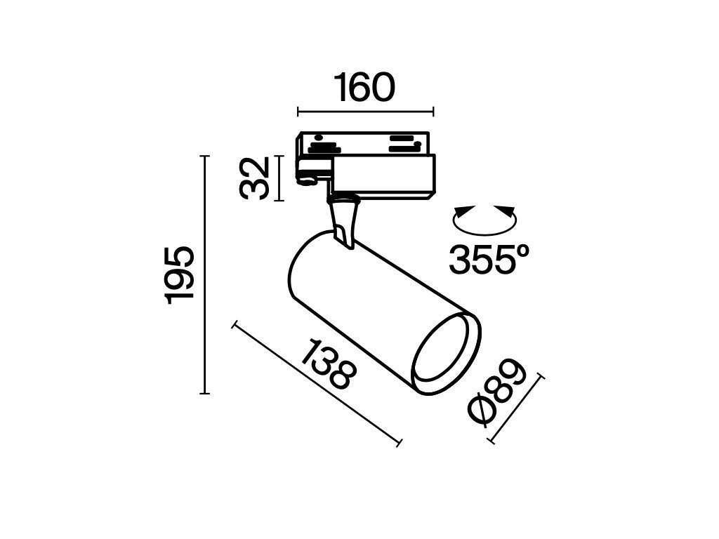 Reflektorové LED svítidlo VUORO 20W pro 3F systém TRINITY, v. 19,5 cm, 3000K nestmívatelné