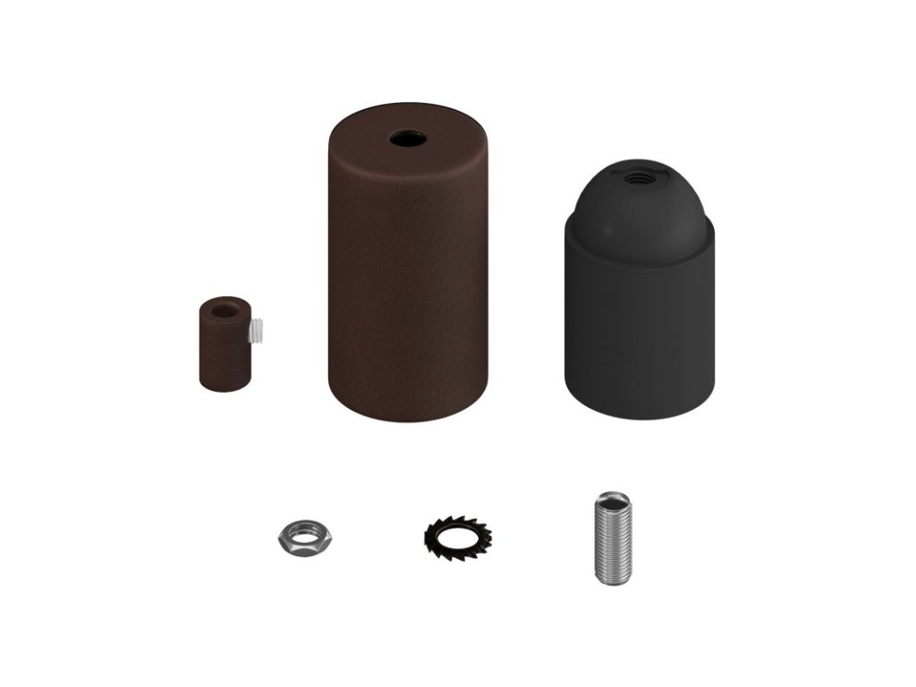 Válcová objímka v sadě je složena z malé krytky, objímky E27, kabelové průchodky a je ideální pro vytvoření závěsné lampy. Stačí zakoupit (není součástí) Váš oblíbený textilní kabel a stropní baldachýn.