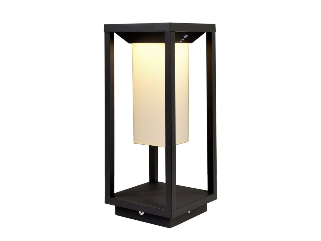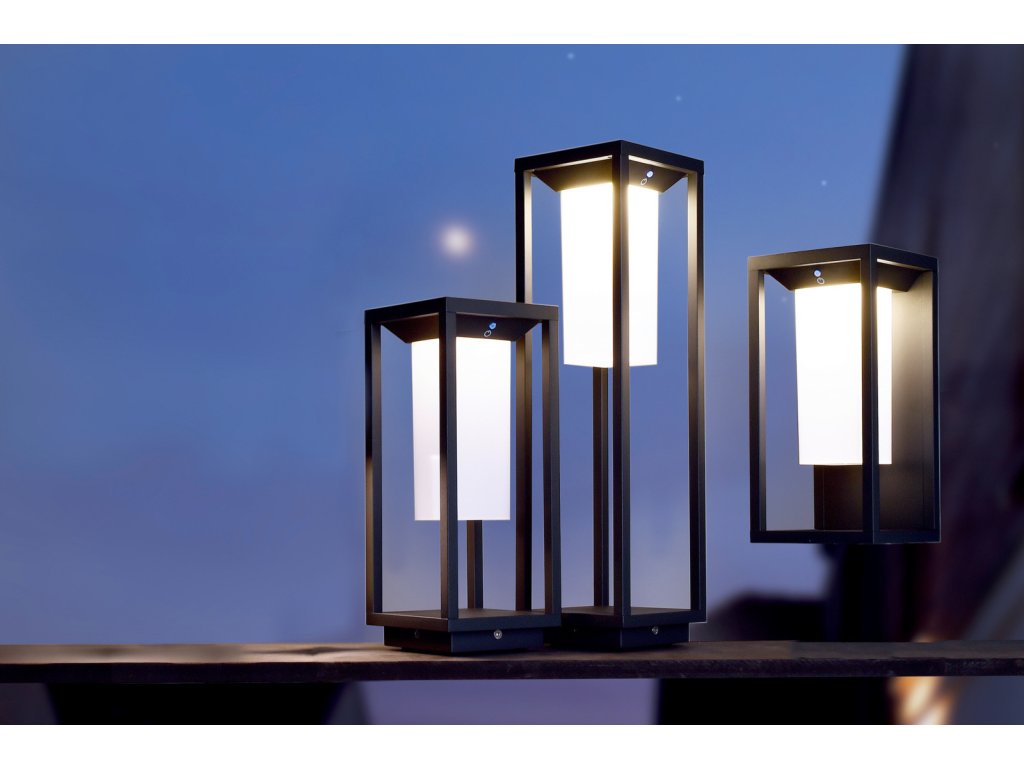 Designový venkovní LED stojací svítidlo Samas Solar. Svítidlo je obohaceno o solární panel, které má mimořádně dlouhou dobu svícení díky úspornému režimu, kdy za absence slunce svítí pouze 15% světelného výkonu. Jakmile její integrovaný senzor zaznamená pohyb, rozsvítí se plným výkonem. Svítidlo lze také vypnout pomocí tlačítka.