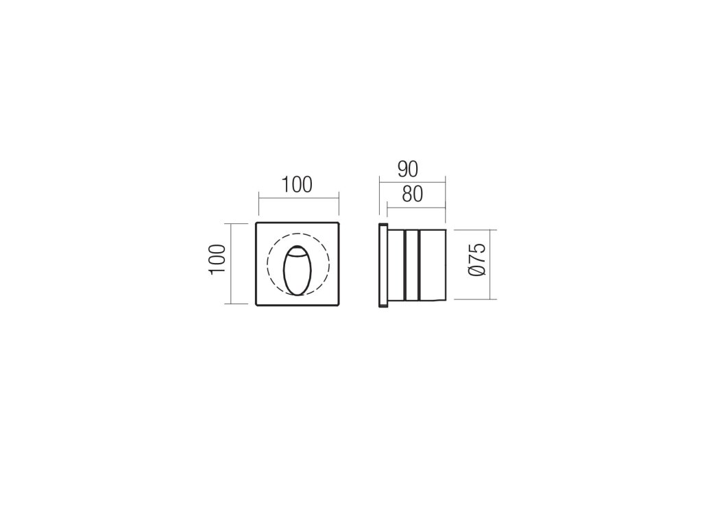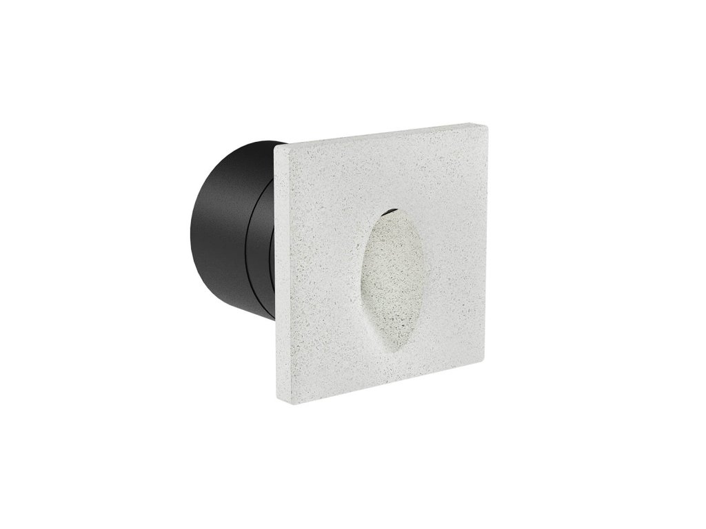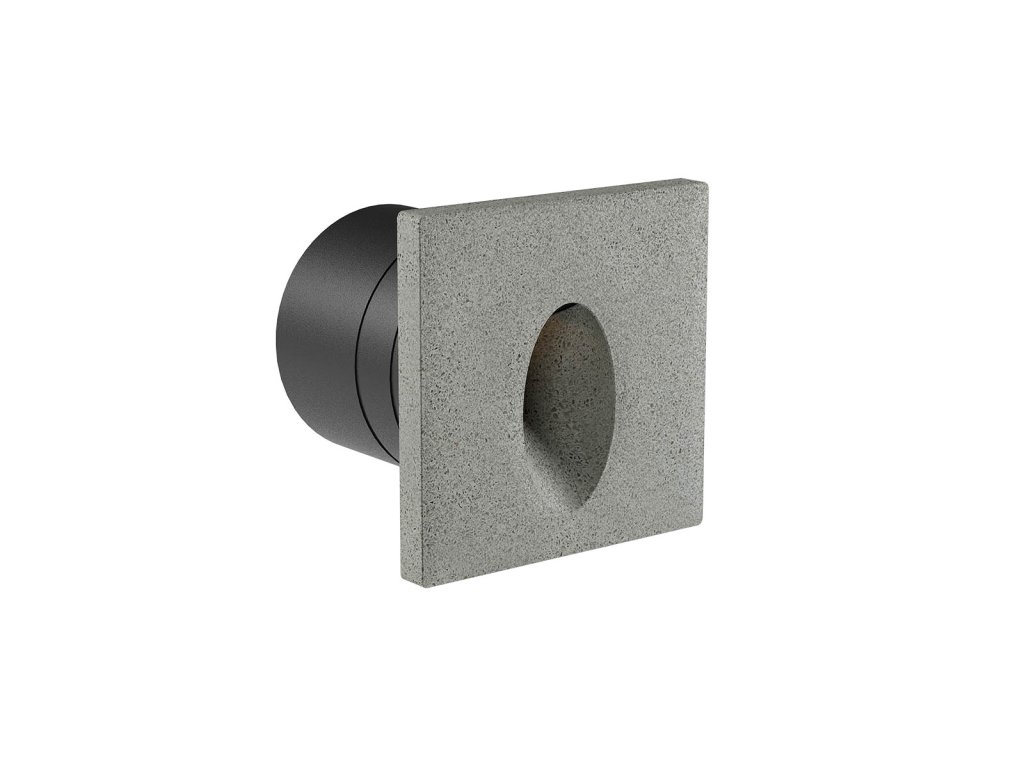 Venkovní nebo vnitřní zapuštěné nástěnné svítidlo s asymetrickým osvětlením, betonové tělo s tmavě šedým nebo slonovinovým povrchem a pískově černou barvou, průhledný skleněný difuzor, integrovaný ovladač. (průměr montážního otvoru 75 mm)
