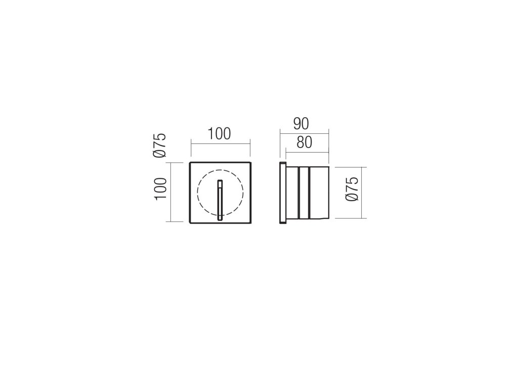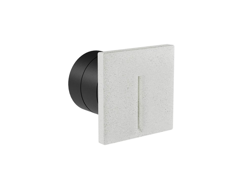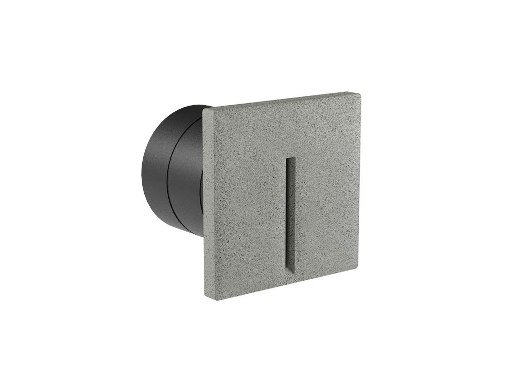 Venkovní nebo vnitřní zapuštěné nástěnné svítidlo s asymetrickým osvětlením, betonové tělo s tmavě šedým nebo slonovinovým povrchem a pískově černou barvou, průhledný skleněný difuzor, integrovaný ovladač. (průměr montážního otvoru 75 mm).