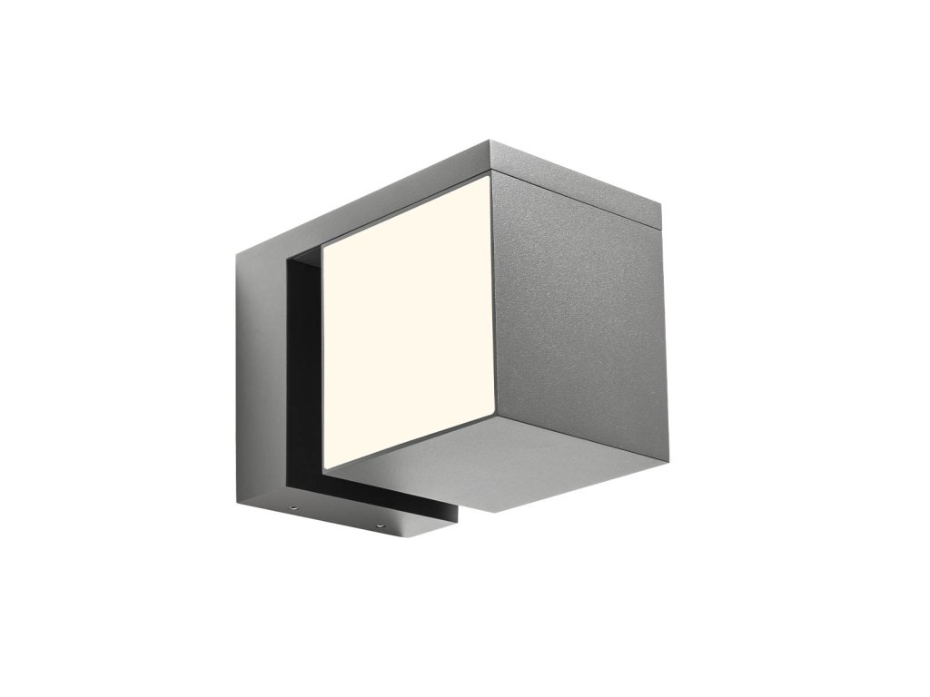 Nastavitelné svítidlo KUB pro montáž na vnější stěnu, vybavené SMD LED diodami, hliníkové tělo s elektrostatickým lakováním v tmavě šedé barvě, opálový polykarbonátový difuzor.