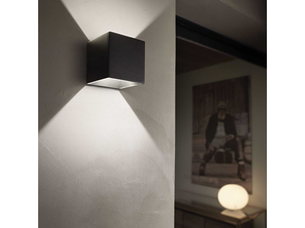 Práškově lakované tělo venkovního nástěnného LED světla RUBIK z litého hliníku. Vnitřní struktura odráží světelný paprsek shora i zdola. Svítidlo je k dispozici v antracitovém, bílém, kávovém, šedém nebo černém provedení.
