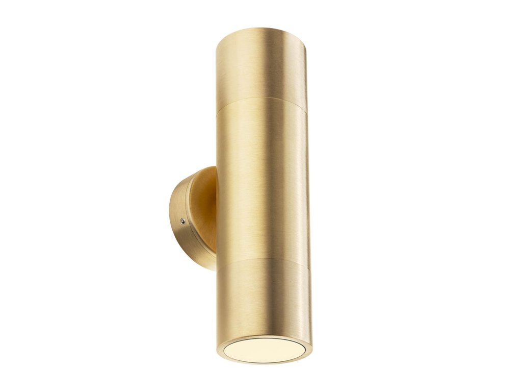 Venkovní nástěnné svítidlo STAKE, konstrukce z masivní mosazi ve dvou barevných variantách - mosaz či antická mosaz, difuzéry z průhledného tvrzeného skla.