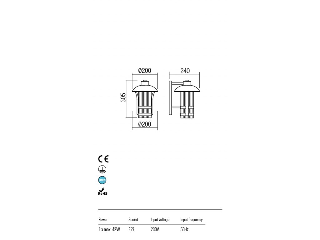 Venkovní nástěnné svítidlo je vyrobeno z kovu se skleněným stínidlem. Na stínidle jsou jako dekorace skleněné pruhy, které obzvláštňují vzhled svítidla. Svítidlo se tak stává jedinečným a unikátním kouskem. Používejte LED zdroj s paticí E27 - není součástí balení.Parametry produktu: