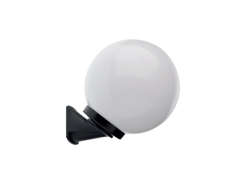 Venkovní nástěnné svítidlo, černý polykarbonát, kulový difuzor z opálového nebo kouřového akrylu Ø 250 mm.