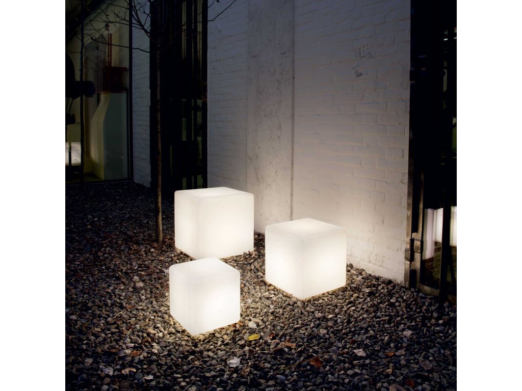 Dekorativní venkovní lampa Luna PT1 D30 v nejmenší variantě ve tvaru krychle o velikosti 30 cm. Difuzor je vyroben z matného bílého plastu, který příjemně rozptyluje světlo. Svítidlo je osazeno paticí E27 pro žárovku o maximálním příkonu 1 x 60 W, která není součástí dodávky. Pro úsporu el. energie doporučujeme použití úsporné LED žárovky. Lampa je opatřena přívodním kabelem se zástrčkou a montážní základnou pro připevnění k zemi. Krytí IP44 značí voděodolnost a vhodnost pro venkovní použití.Parametry produktu: