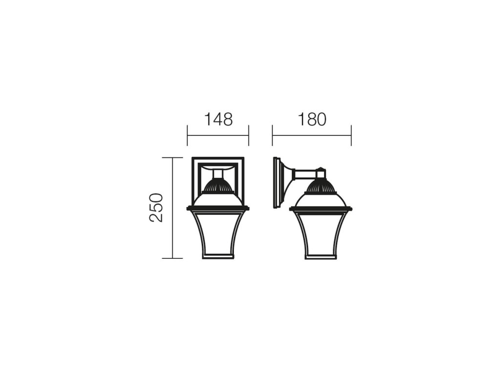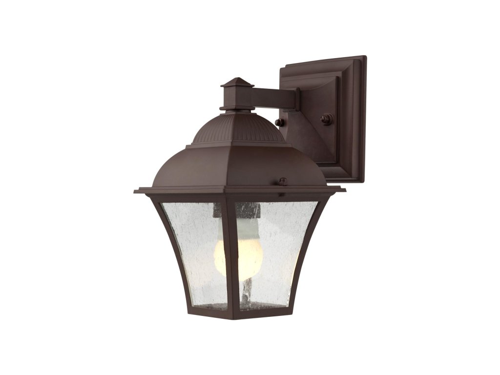 Venkovní stropní svítidlo, tělo z litého hliníku, hnědá starožitná povrchová úprava, skleněný difuzor s bublinkovým efektem. Žárovka E27 není součástí balení.