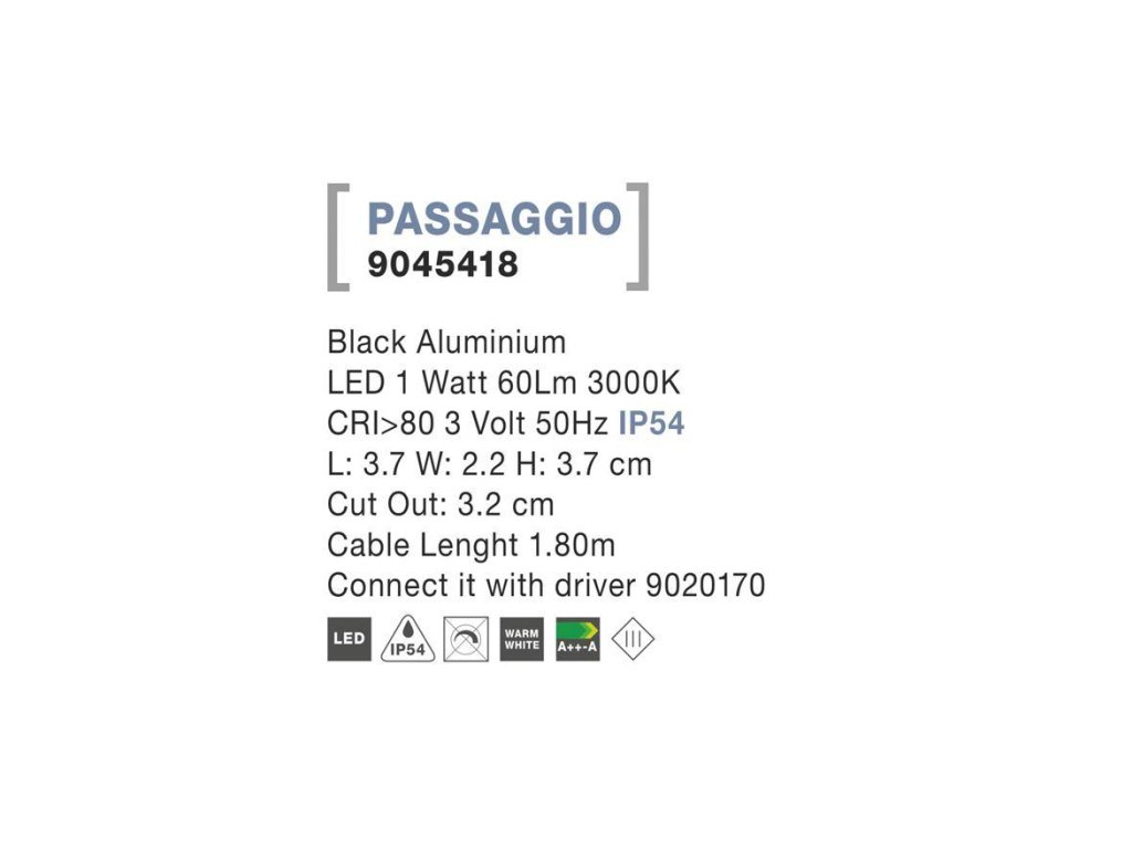 Venkovní zapuštěné svítidlo do zdi PASSAGGIO černý hliník LED 1W 3000K 3V IP54 délka kabelu 1.80m použijte driver 9020170