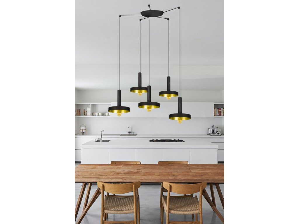 WHIZZ závěsné svítidlo, černá/zlatá, 5L - FARO