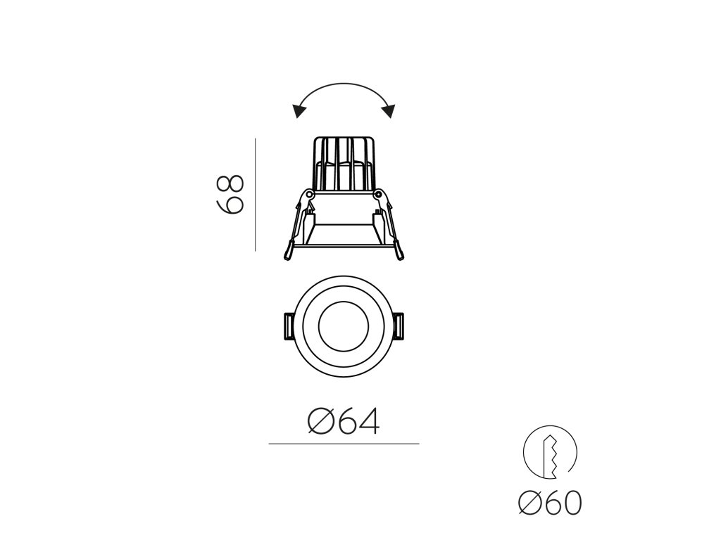 Zapuštěné LED bodové svítidlo MOVE, ⌀ 64 mm, 5W, CRI90