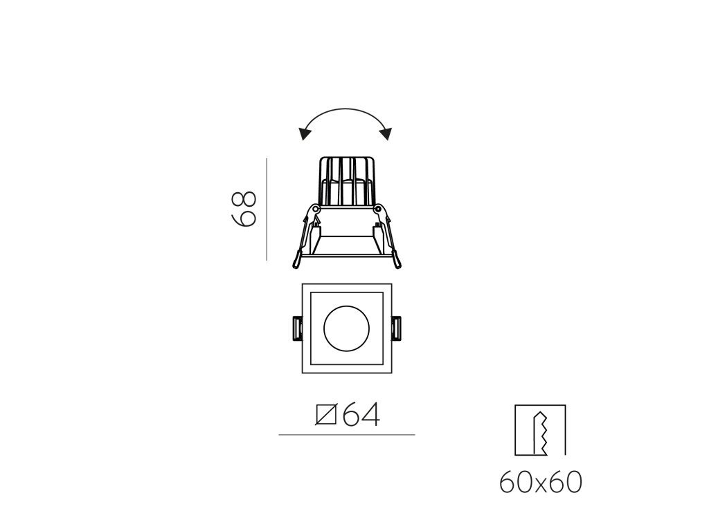 Moderní, minimalistické zapuštěné bodové LED svítidlo s IP44 čtvercového tvaru.