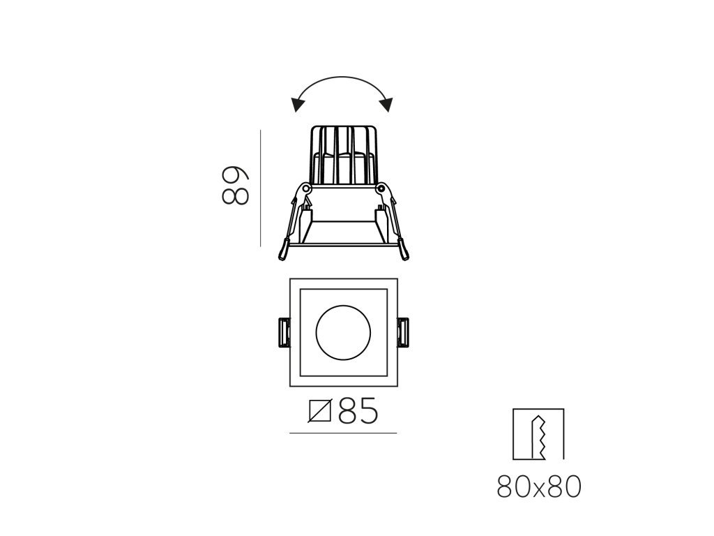 Zapuštěné LED bodové svítidlo MOVE, š. 85 mm, 12W, CRI90