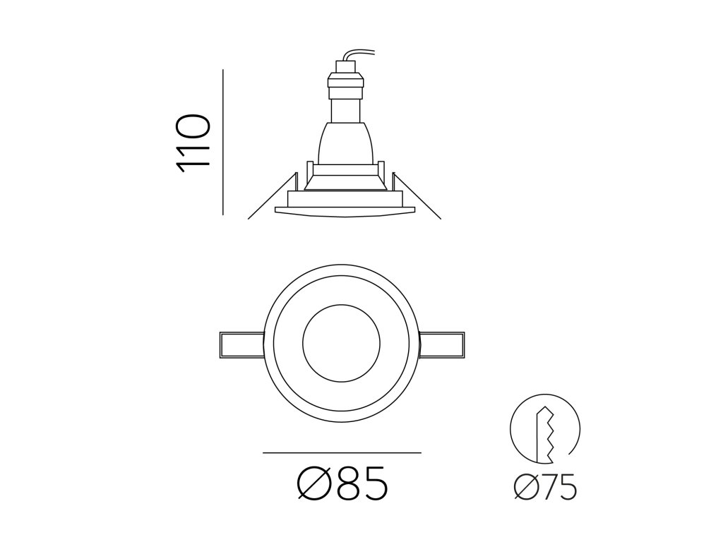 Zápustné svítidlo NORK, ⌀ 85 mm, 1xGU10, IP64/IP20