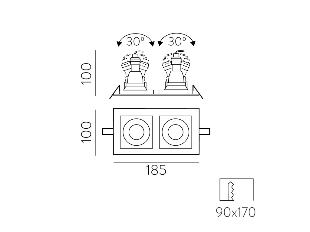 Zapuštěné svítidlo SAN, š. 19 cm, 2xGU10 8W