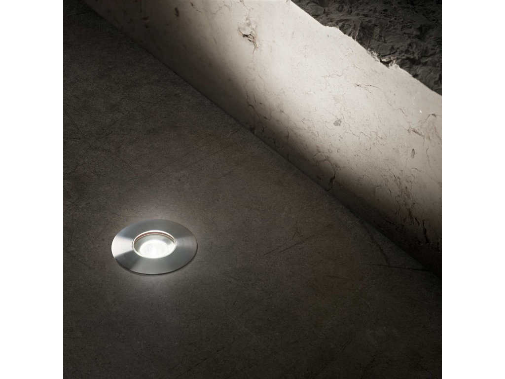 Venkovní LED zápustné svítidlo ROCKET MINI PT1 z kolekce zahradního osvětlení Ideal Lux v provedení s jedním světlem v blízkosti země o průměru 5,5 cm ideální k nasvícení chodníků a cest v zahradě, prostoru kolem bazénu. Na výrobu těla byla použita nerezová ocel a je konstruováno tak, aby nebylo vidět žádné šrouby. Studené teplé bílé světlo s teplotou chromatičnosti 4000K poskytuje integrovaný LED zdroj s příkonem 1 x 2 W a svítivostí až 160lm. Tento zdroj s životností až 50.000 hodin je součástí svítidla a nelze ho vyměnit. Krytí IP68 vyjadřuje prachotěsnost, odolnost proti vodě i trvalému ponoření. Pro montáž je potřeba otvor o průměru 50 mm. Celkové rozměry svítidla činí 110 x 55 x 55 mm. Trafo není součástí, je nutné doobjednat.Parametry produktu: