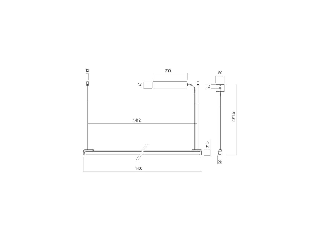 Závěsné LED lineární svítidlo CRISP 41W, š. 146 cm, stmívatelné