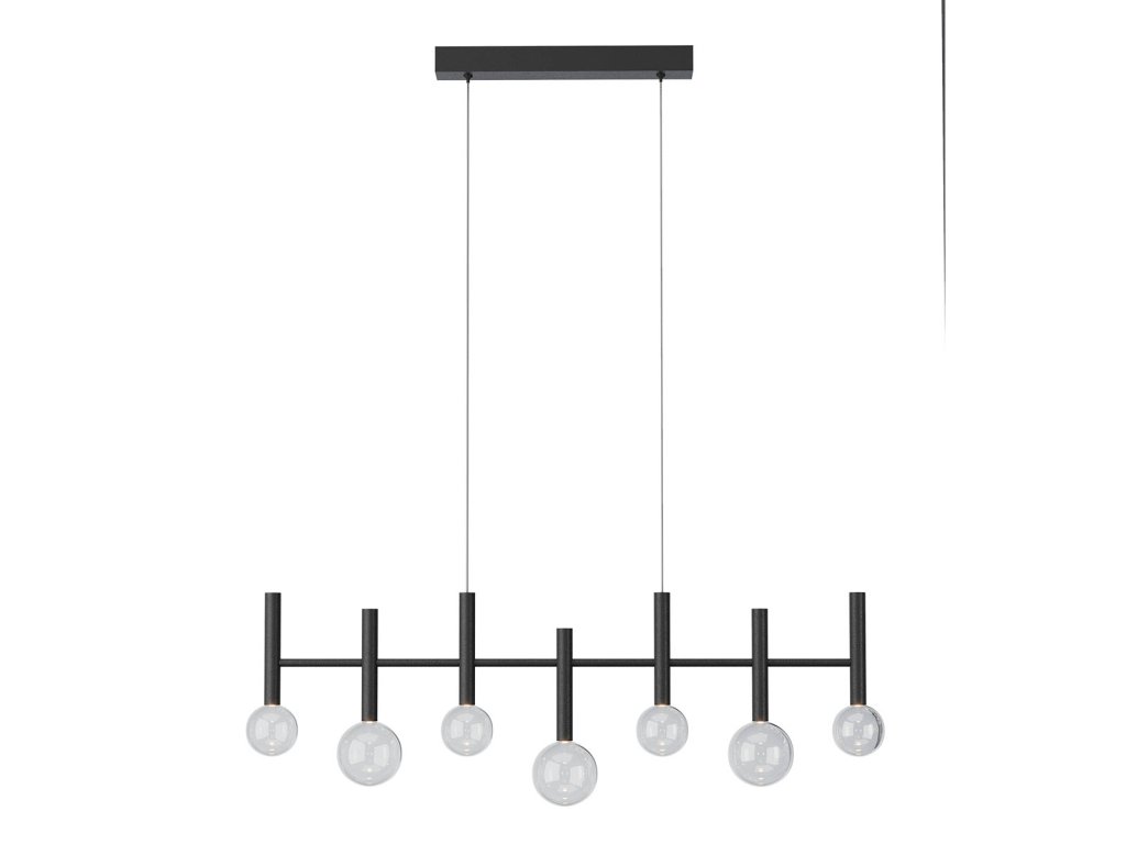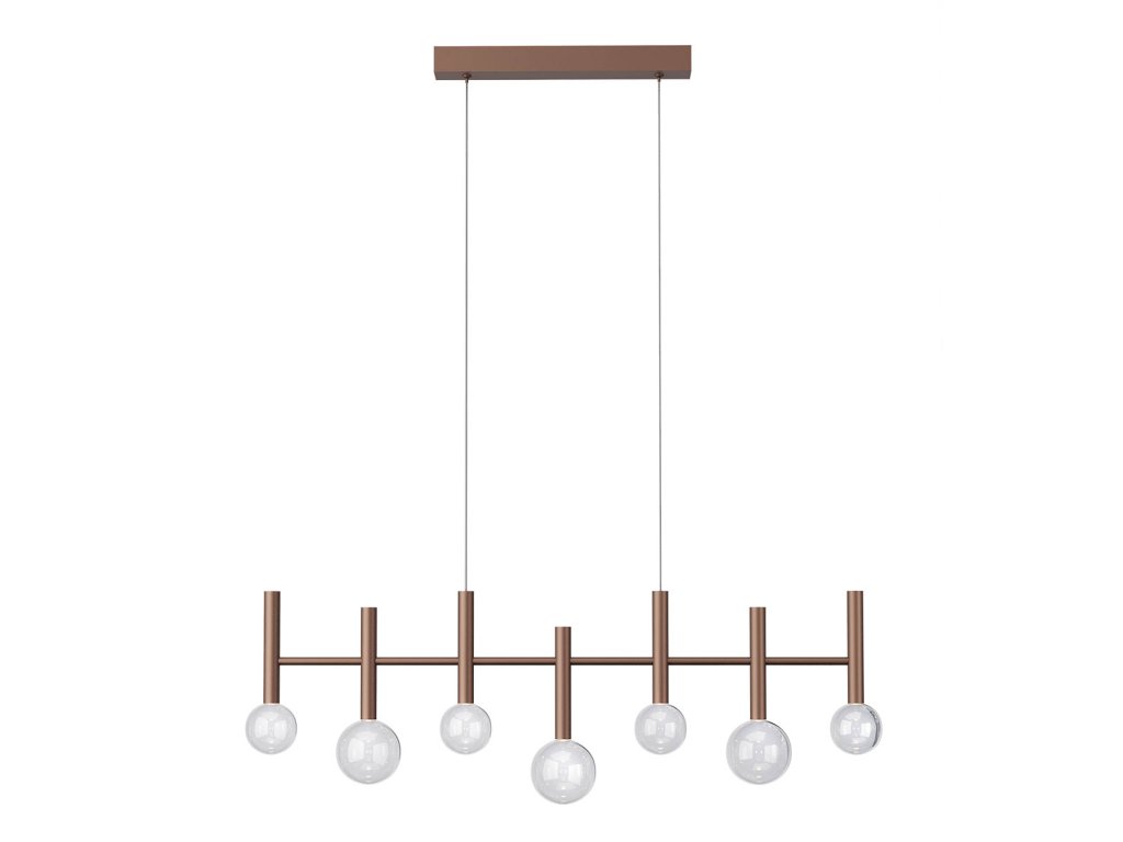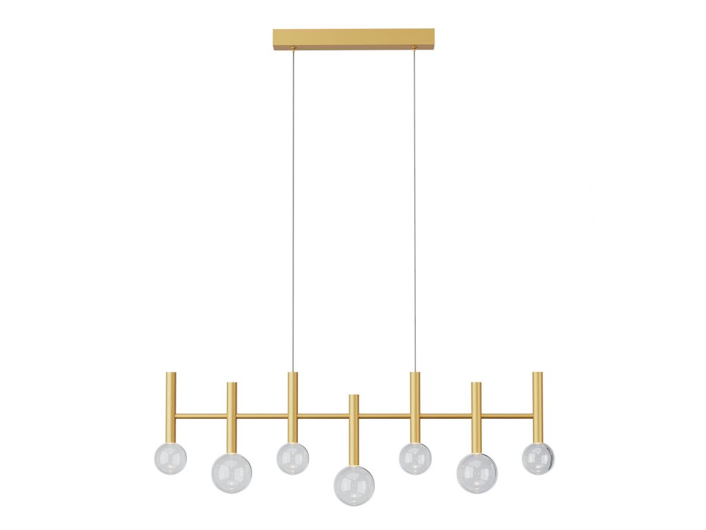 Závěsné vnitřní osvětlení BOLLA s COB LED diodami, stmívatelné pomocí TRIAC, kovová a hliníková konstrukce lakovaná matnou černou, zlatou nebo kávovou barvou, difuzory z průhledného foukaného skla.