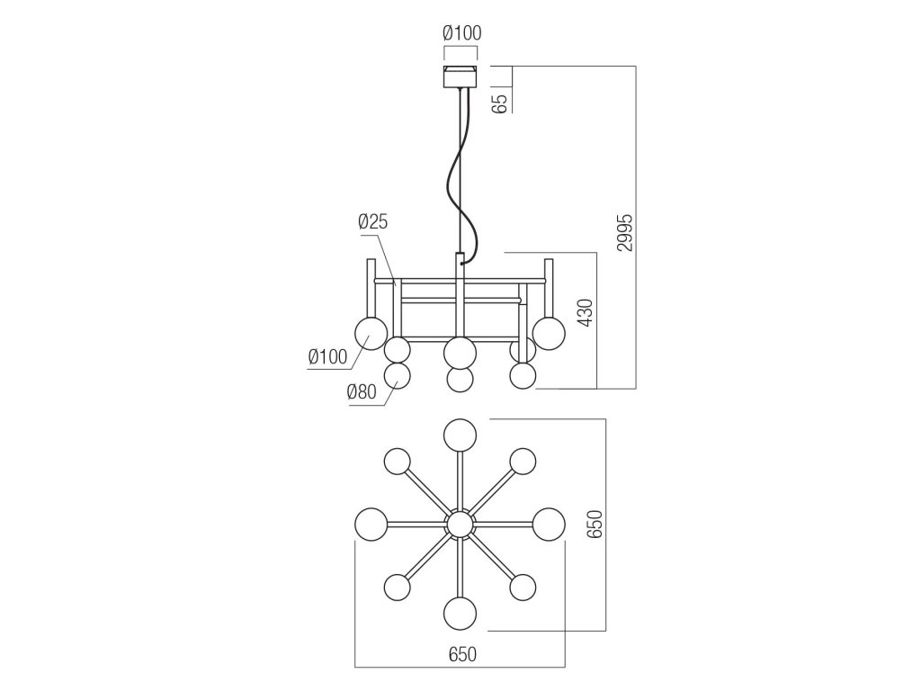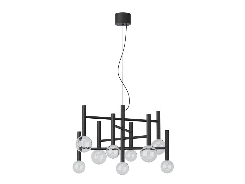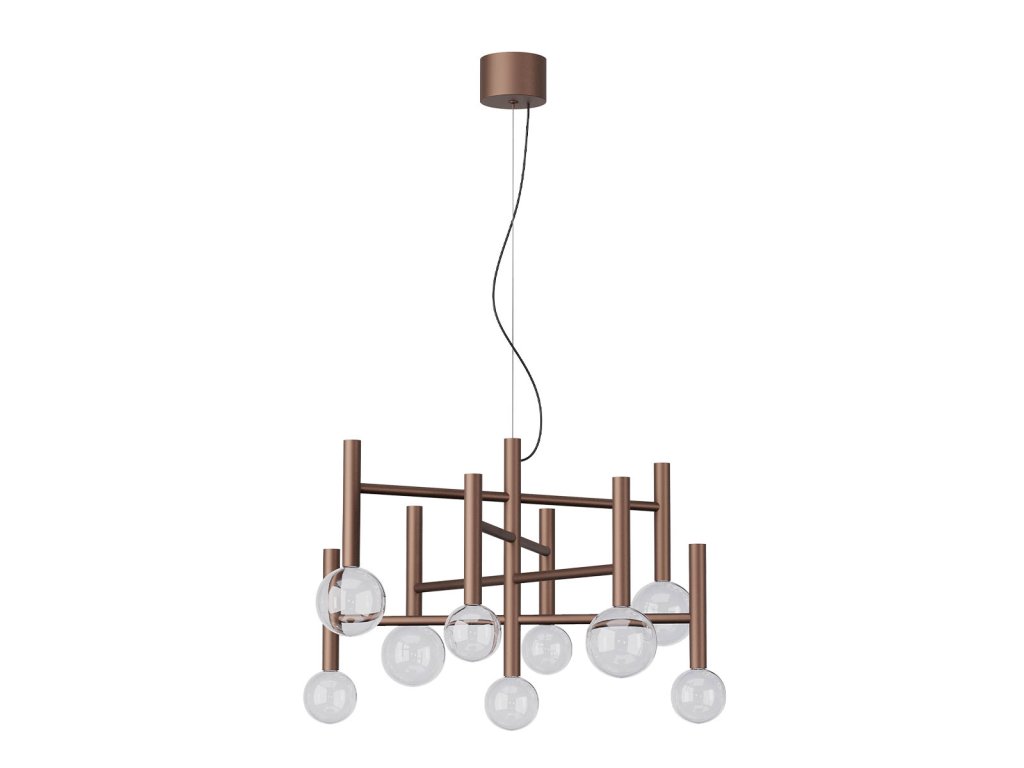 Závěsné vnitřní osvětlení BOLLA s COB LED diodami, stmívatelné pomocí TRIAC, kovová a hliníková konstrukce lakovaná matnou černou, zlatou a kávovou barvou, difuzory z průhledného foukaného skla.