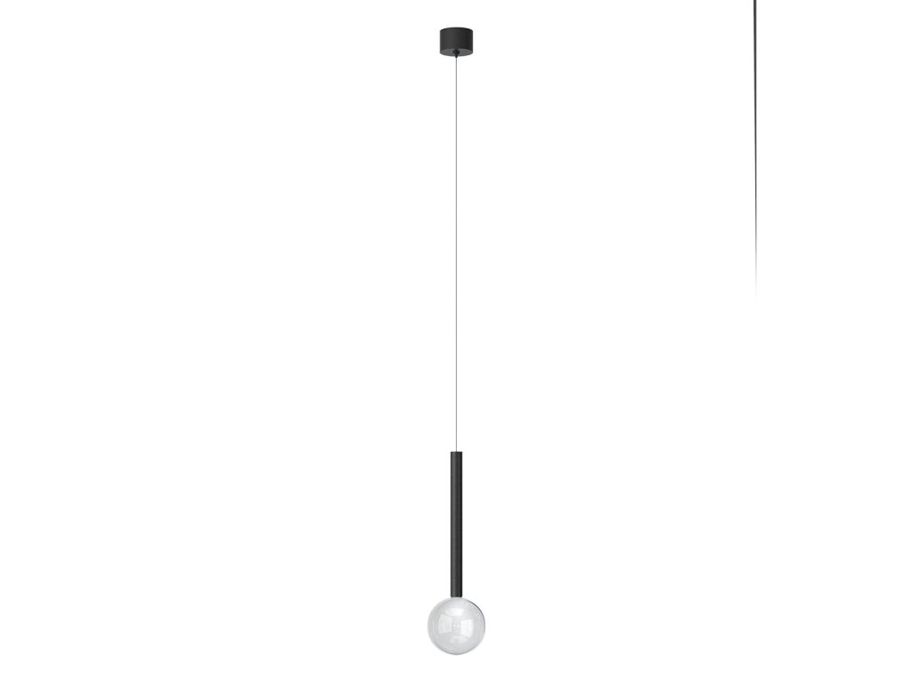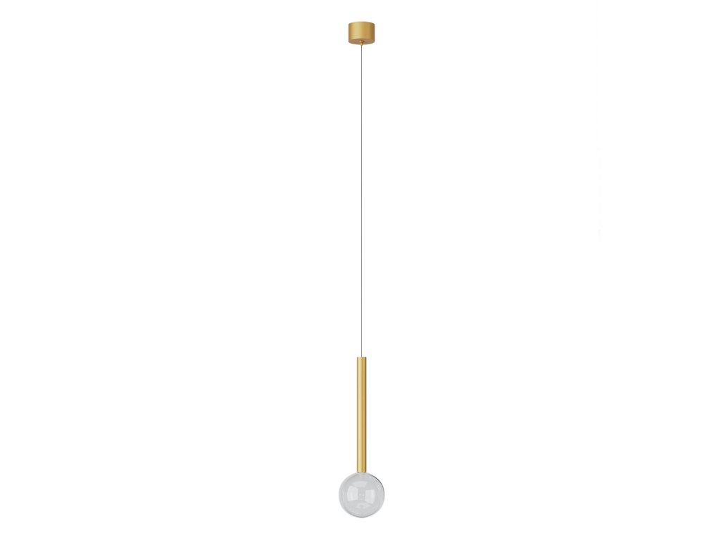 Závěsné vnitřní osvětlení BOLLA s COB LED diodami, stmívatelné pomocí TRIAC, kovová a hliníková konstrukce lakovaná matnou černou, zlatou a kávovou barvou, difuzory z průhledného foukaného skla.