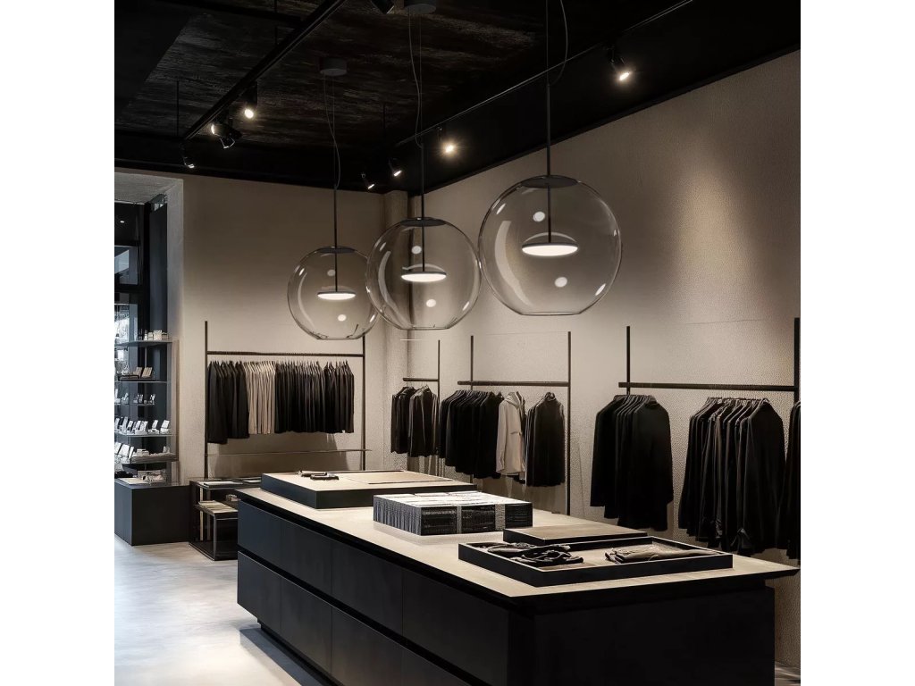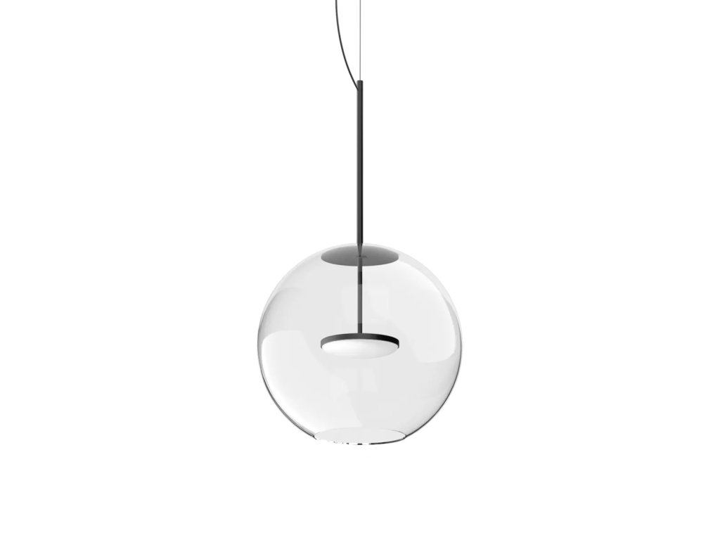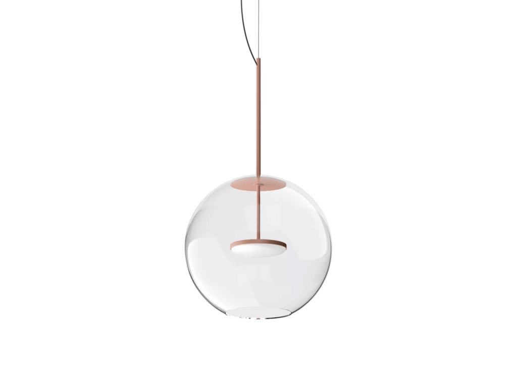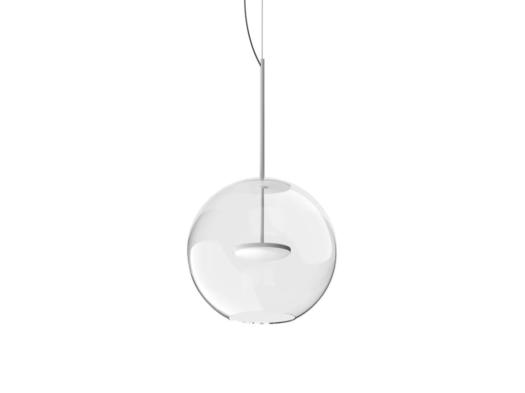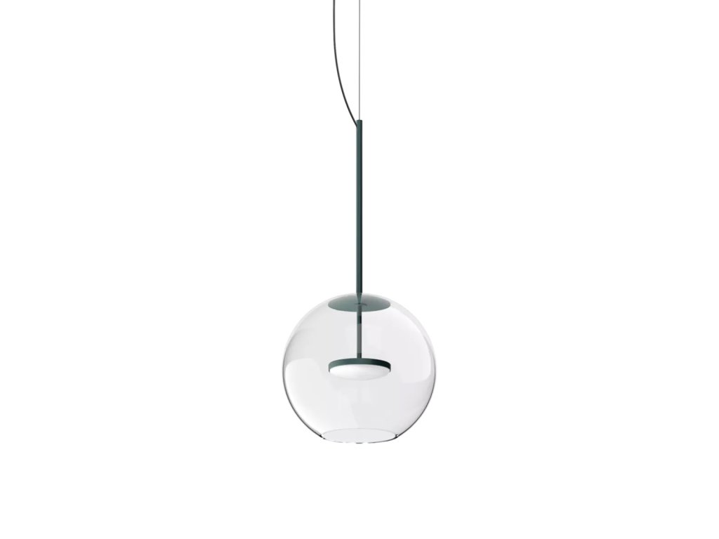 Cristalbolla_P je závěsné svítidlo, které kombinuje čisté linie s působivým světelným výkonem. Hliníkový rám a tělo mají strukturovaný lakovaný povrch, který je k dispozici v barvách bílá, černá, broskvová, petrolejová a tmavě modrá, aby dokonale doplňoval jakýkoli styl interiéru, od minimalistického po sofistikovaný. Ústředním prvkem designu je sférický difuzér z průhledného skla, který zvyšuje čistotu světla a vytváří elegantní, přirozené odrazy. Svítidlo doplňuje lakovaný kovový kryt, barevně sladěný s tělem lampy, který zajišťuje vizuální harmonii a pečlivou pozornost k detailům.