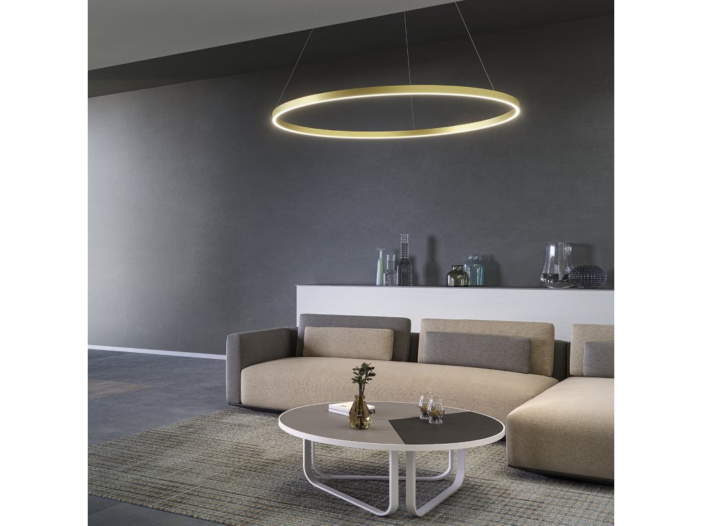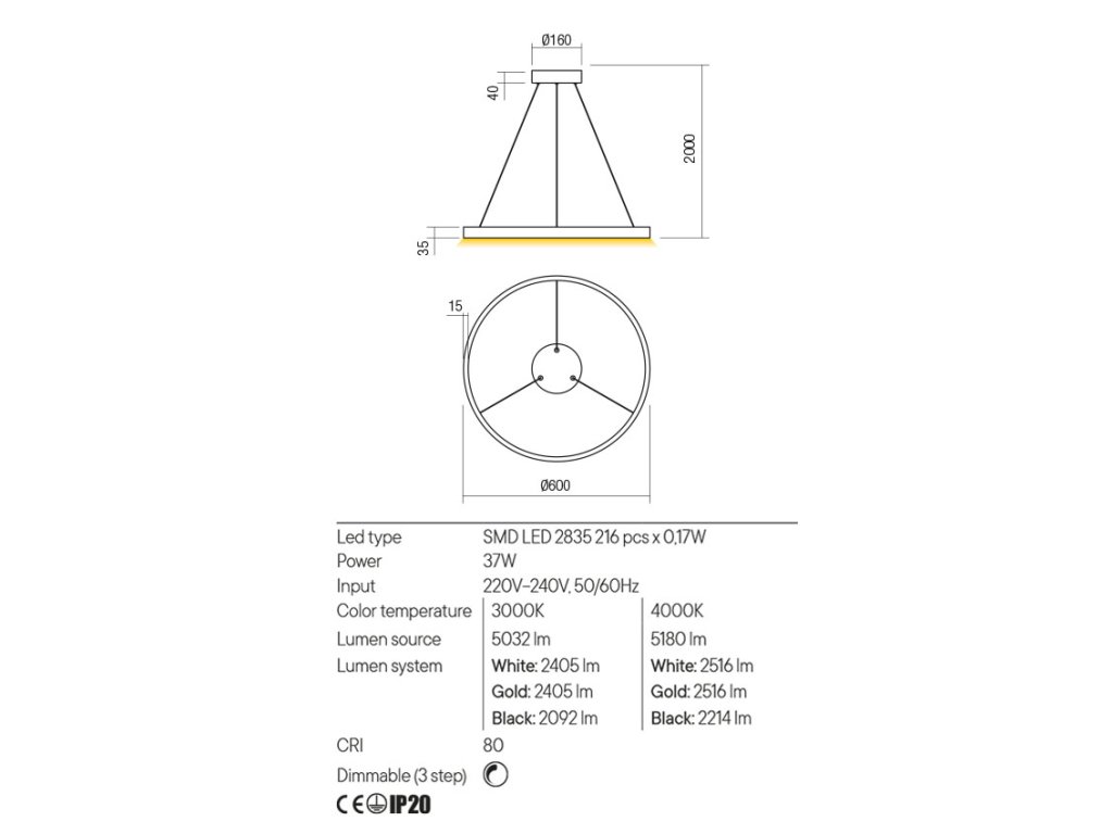 • kruhová konstrukce je vyrobena z kovu a hliníku lakovaná pískově bílou, matně zlatou nebo pískově černou