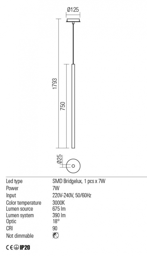 | Závěsné LED svítidlo KANJI ø 2,5 cm, v. 55 cm |