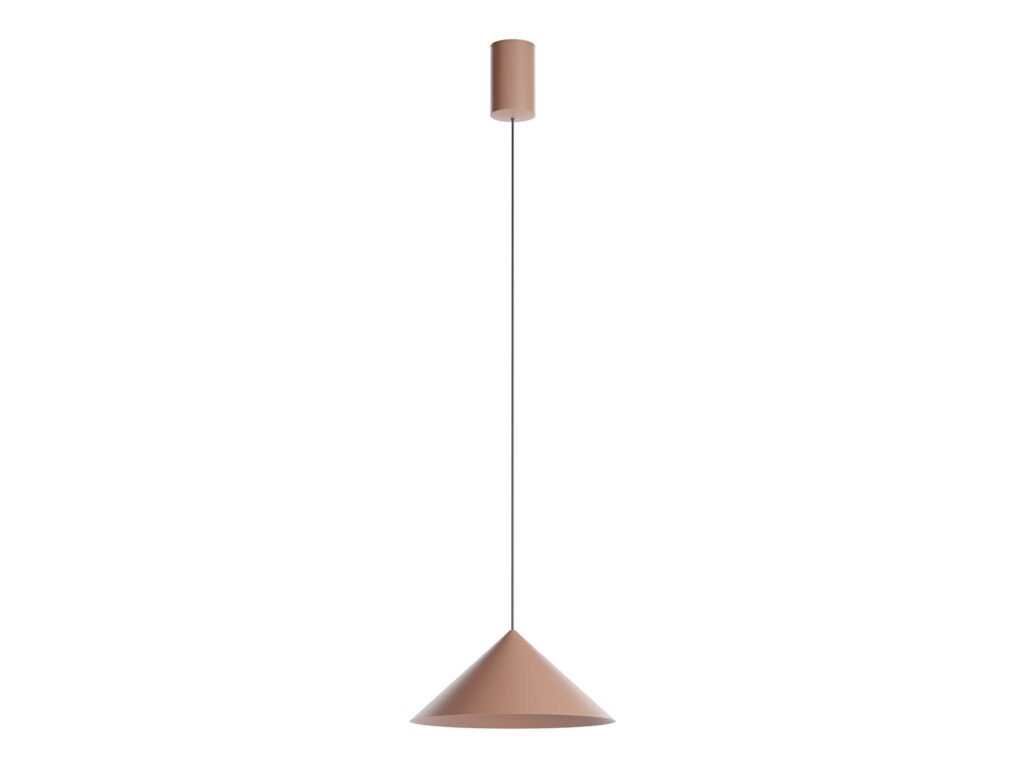Závěsné svítidlo pro interiéry s COB LED diodou, stmívatelné pomocí TRIAC. Hliníková konstrukce a hliníkový difuzor lakovaný v barvě staré mědi.