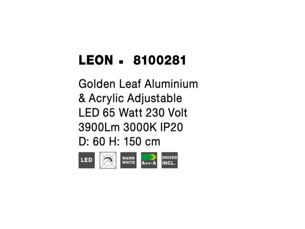 Závěsné LED svítidlo LEON plátkovaný zlatý hliník a akryl nastavitelné 65W 3000K stmívatelné