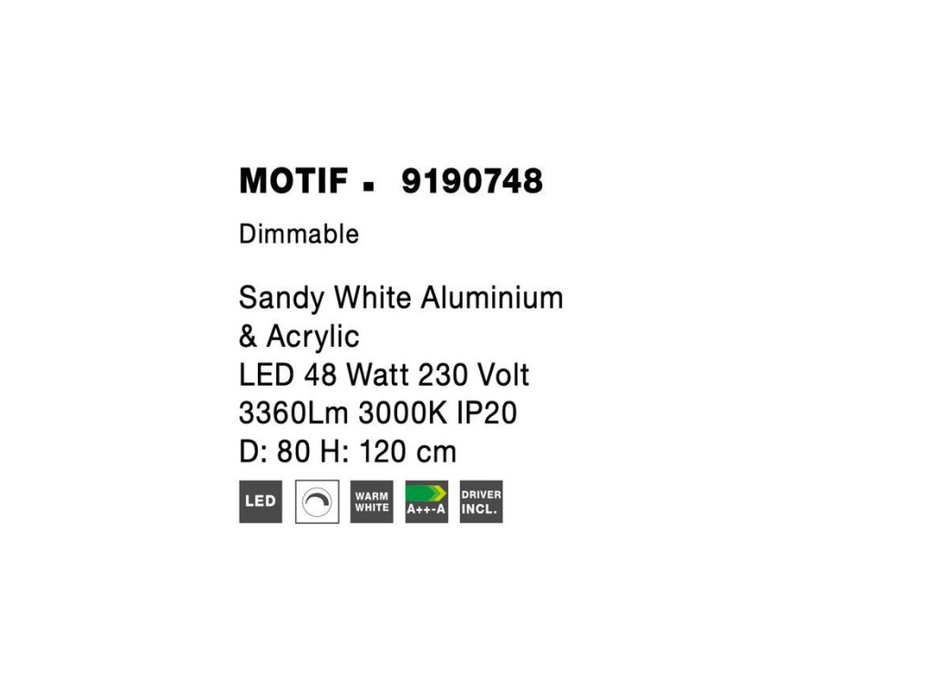 Závěsné svítidlo MOTIF, 48W je k dispozici v bílé, černé a mosazné barvě. Svítidlo je vyrobeno z hliníku a akrylu. Rozměry svítidla jsou 80x120 cm. Integrovaný LED zdroj vydává teplé bílé světlo (3000K). Svítivost zdroje je 3360 lumenů a je stmívatelný systémem TRIAC. Svítidlo doporučujeme nad jídelní stůl, do obývacího pokoje nebo ložnice.