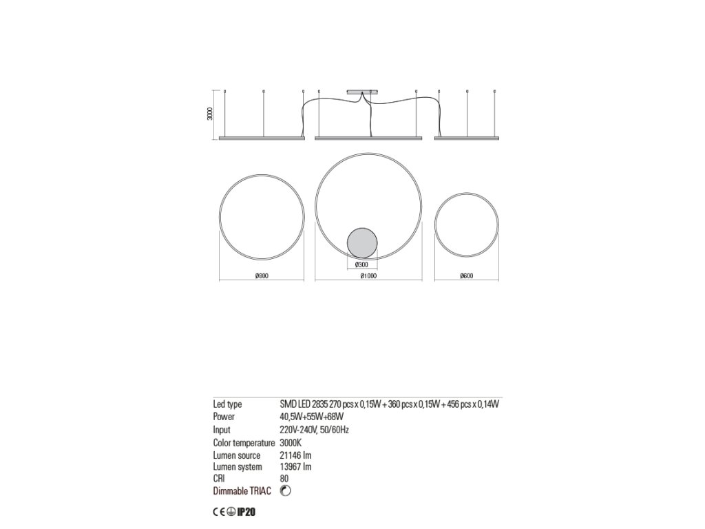 Závěsné LED svítidlo ORBIT ø120/ø80/ø40 cm, 3000K, 3 kruhy |