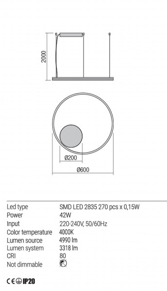 | Závěsné LED svítidlo ORBIT ø 80 cm, 4000K |