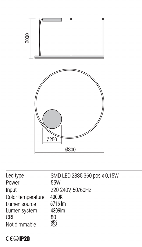 | Závěsné LED svítidlo ORBIT ø 60 cm, 4000K |