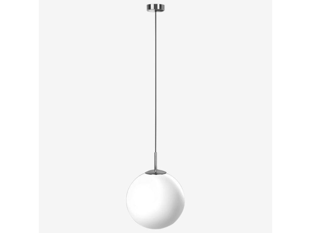 Závěsné LED svítidlo POLARIS ZKS vyrobené z ručně foukaného trojvrstvého skla v matně opálovém provedení a s ocelovým prvkem lakovaným RAL bílou, RAL černou, RAL chromovou, chromovou nebo mosaznou barvou. Závěs je samonosný vodič bílé nebo černé barvy vyztužený ocelovým lankem. Průměr svítidla je 40 cm. Délka kabelu činí 200 cm. Rozměr rozety je ⌀12xv6 cm. Na výběr jsou varianty 3000K (teplá bílá) a 4000K (neutrální bílá) a obě tyto varianty jsou k dispozici s možností stmívání či bez stmívání. Svítidlo se skvěle hodí do obývacího pokoje, nad jídelní stůl, do ložnice, do Vaší provozovny nebo do kancelářských prostor.