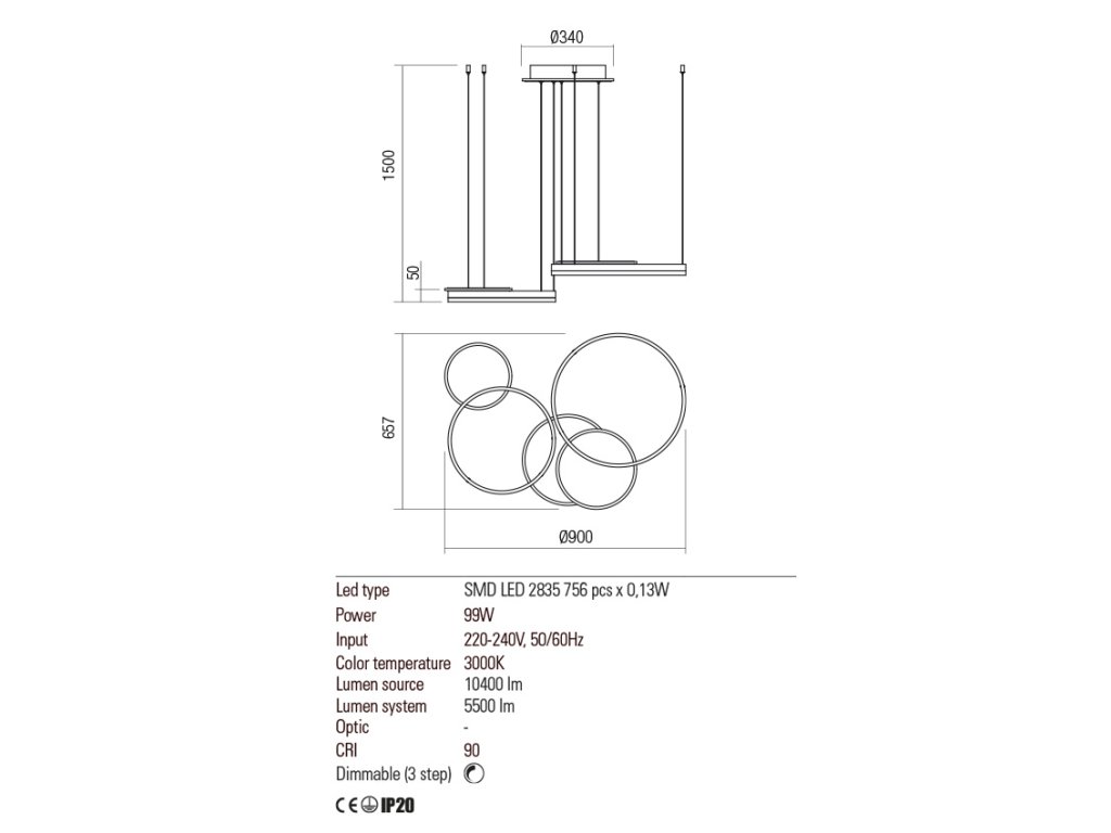 Závěsné LED svítidlo Sigua - kulaté, 90x66cm - AKCE