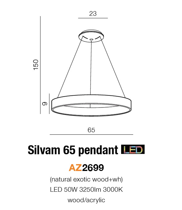 - závěsné světlo SILVAM je vyrobeno z exotického dřeva v barvě hnědé