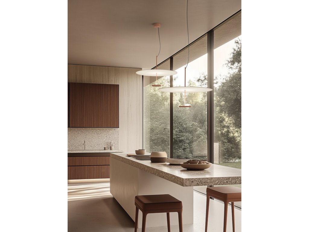 Stilo_P je závěsné svítidlo s elegantním minimalistickým designem, ideální pro moderní prostory, které vyžadují dekorativní osvětlení. Hliníkový rám a tělo mají strukturovaný lakovaný povrch, který je k dispozici v barvách bílá, černá, broskvová, petrolejová a tmavě modrá, takže se hodí k jakémukoli architektonickému stylu. Saténový difuzér z polymethylmetakrylátu zajišťuje měkké a rovnoměrné rozložení světla. Díky svému technickému designu vyzařuje Stilo_P světlo vyváženým způsobem (dvojí vyzařování 70/30 %), které se odráží přes difuzér a osvětluje jak dolů, tak nahoru. Design doplňuje lakovaný kovový kryt, který ladí s tělem svítidla a zajišťuje vizuální soulad.