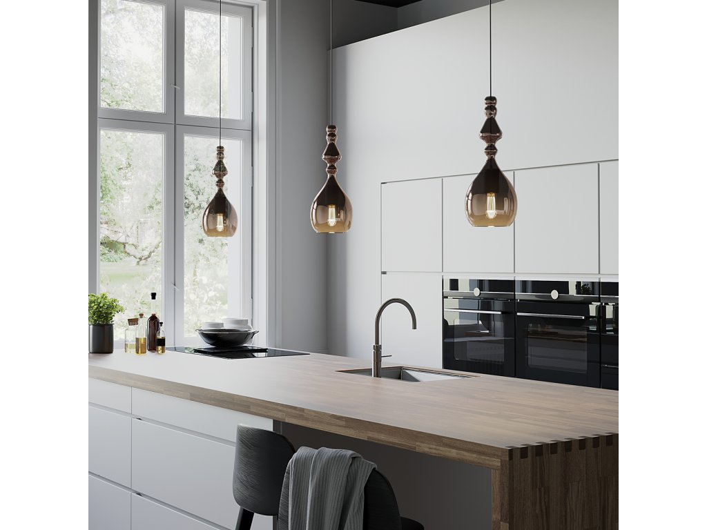 Závěsné svítidlo Ambix z kolekce interiérového osvětlení REDO skvěle vynikne ve stylovém interiéru. Svítidlo je s chromovanou a kovovou konstrukcí. Foukané sklo ve zlaté, kouřové nebo kávové barvě. Osaďte svítidlo vhodným zdrojem s paticí G9 (není součástí svítidla) a Váš interiér bude o krok blíže k dokonalosti.Parametry produktu: