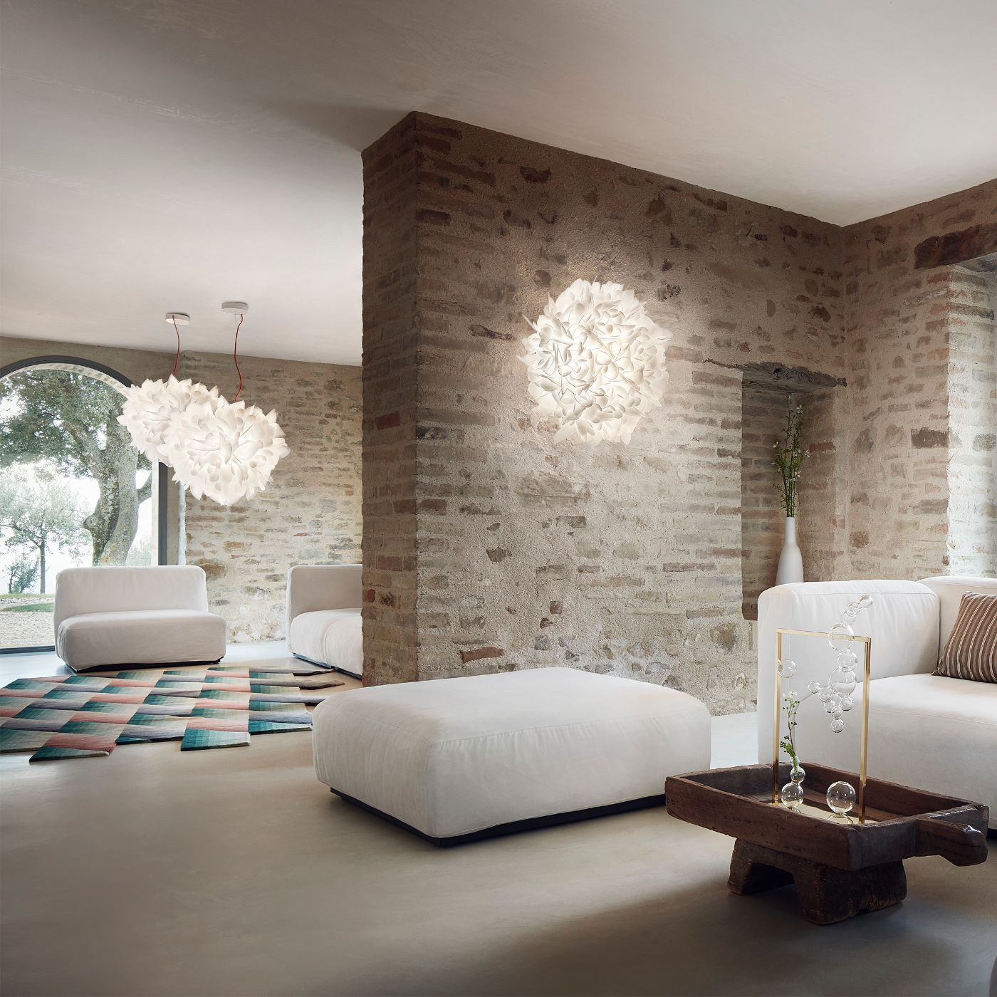 - svítidlo připomíná mrak zachycující první měnící se paprsky ranního slunce, nebo korunu stromu filtrující hru světla a stínů