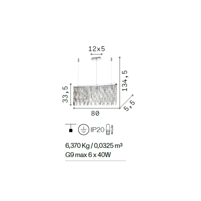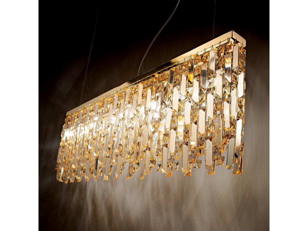 Designový závěsný lustr ELISIR SP6 o délce 80 cm v chromové nebo mosazné barvě doladí jakýkoli moderní i klasický interiér. Perfektně nasvítí obývací prostory, haly, ložnice nebo hotelové interiéry. Úzký rám o šířce pouhých 5,5 cm je kovový s lesklou povrchovou úpravou doplněný dekorativními ověsky z broušeného křišťálu v čiré barvě. Stylový lustr je osazen paticemi G9 o maximálním příkonu 6 x 40 W. Součástí balení jsou úsporné LED světelné zdroje s příkonem 6 x 3,2 W a teplotou chromatičnosti 3000K. Délku zavěšení ocelových lanek a přívodního kabelu lze libovolně nastavit při instalaci podle potřeby od 48,5 cm do 134,5 cm. Krytí IP20 vyjadřuje vhodnost pro použití v interiéru.