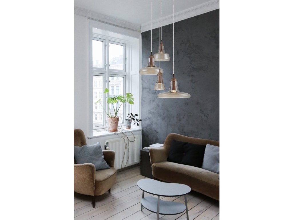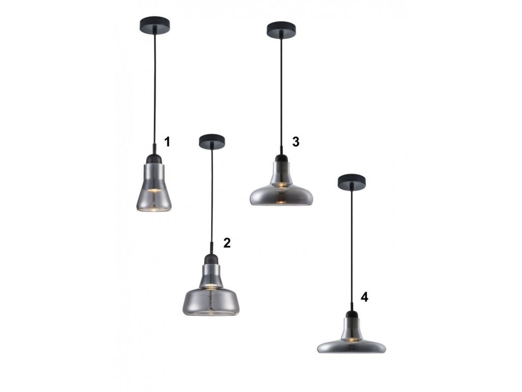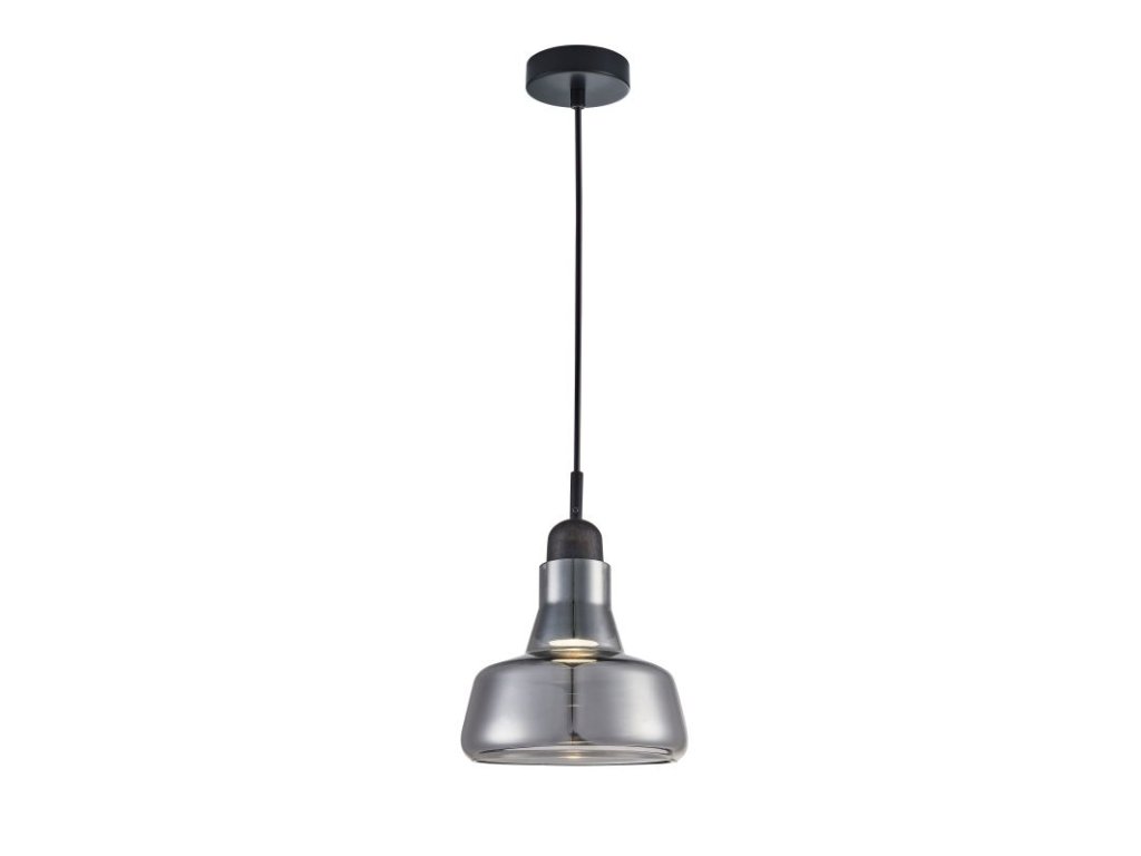 Moderní závěsné svítidlo ERNA v jednoduchém designovém provedení ve 2 kombinacích - skla v kouřové barvě a tmavého dřeva nebo skla v koňakové barvě a přírodního dřeva.