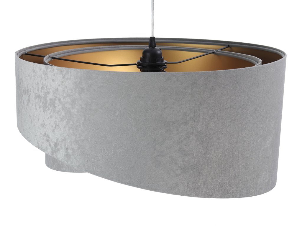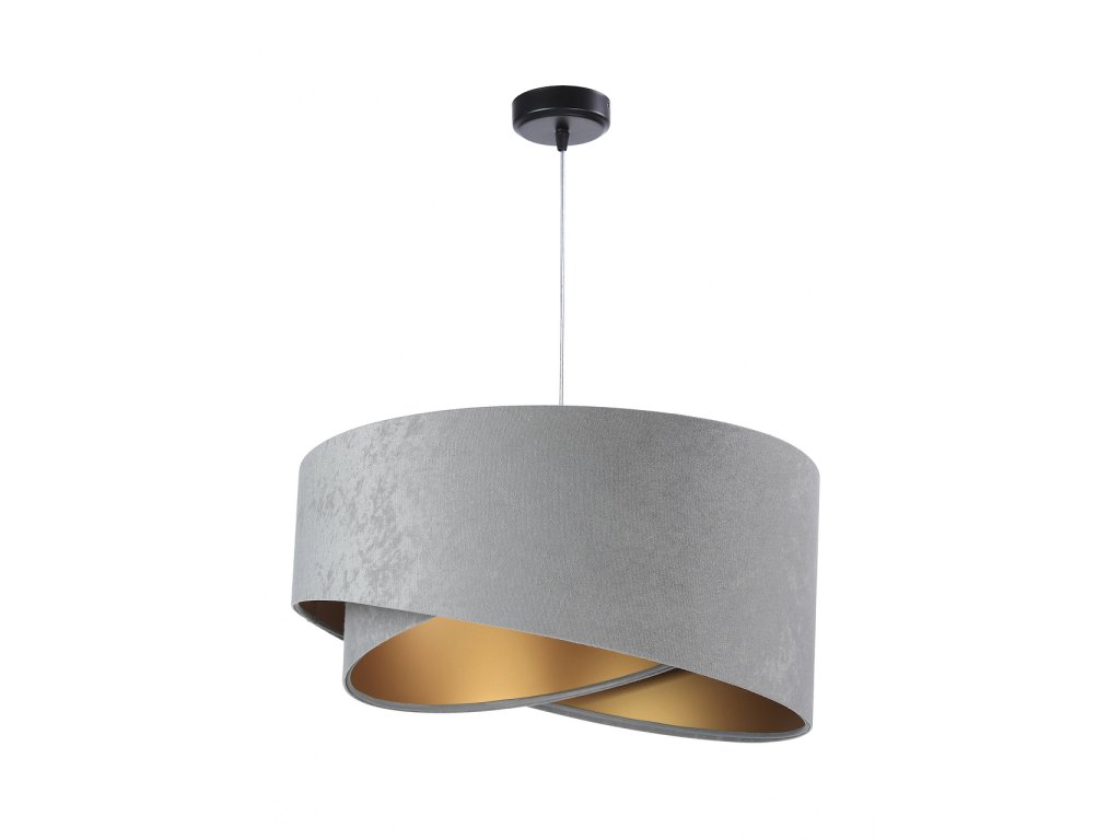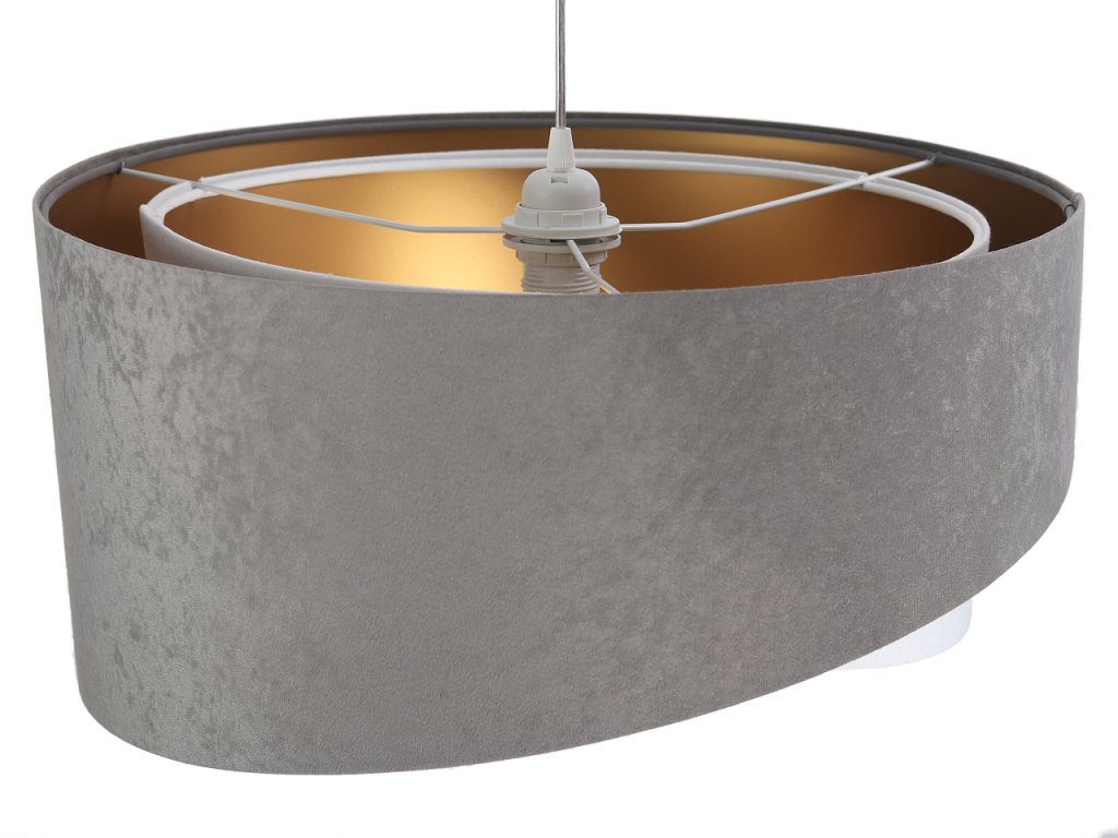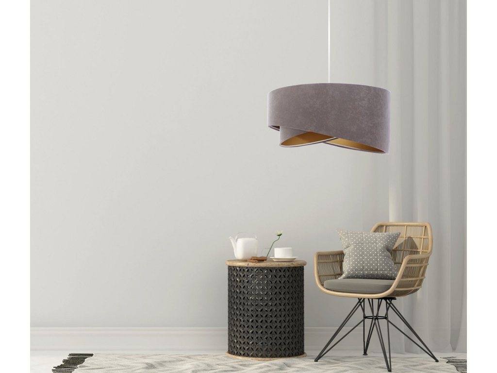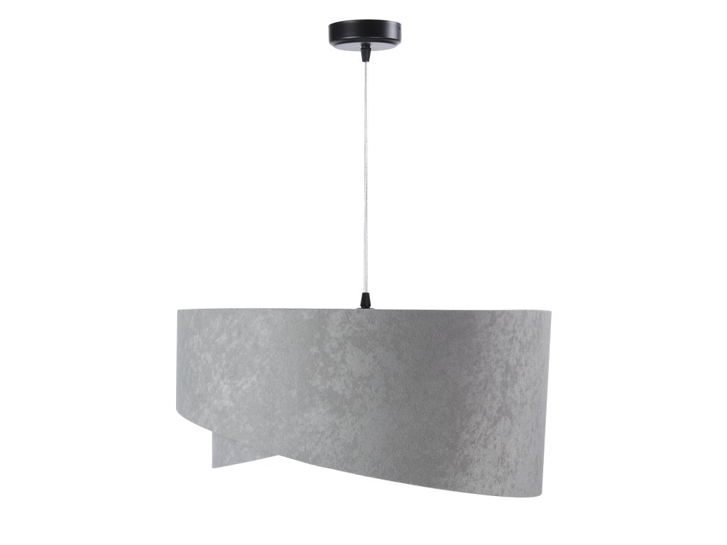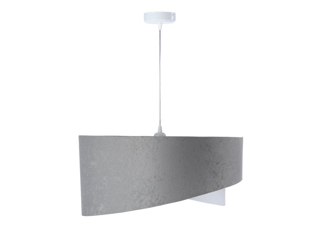 Závěsné svítidlo Galaxy z velurové tkaniny v šedé barvě v kombinaci s šedou, bílou nebo béžovou barvou.