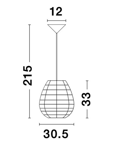 Konstrukce svítidla je z černě lakovaného kovu, mřížka je propletená zajímavým dekorem z černého papíru.