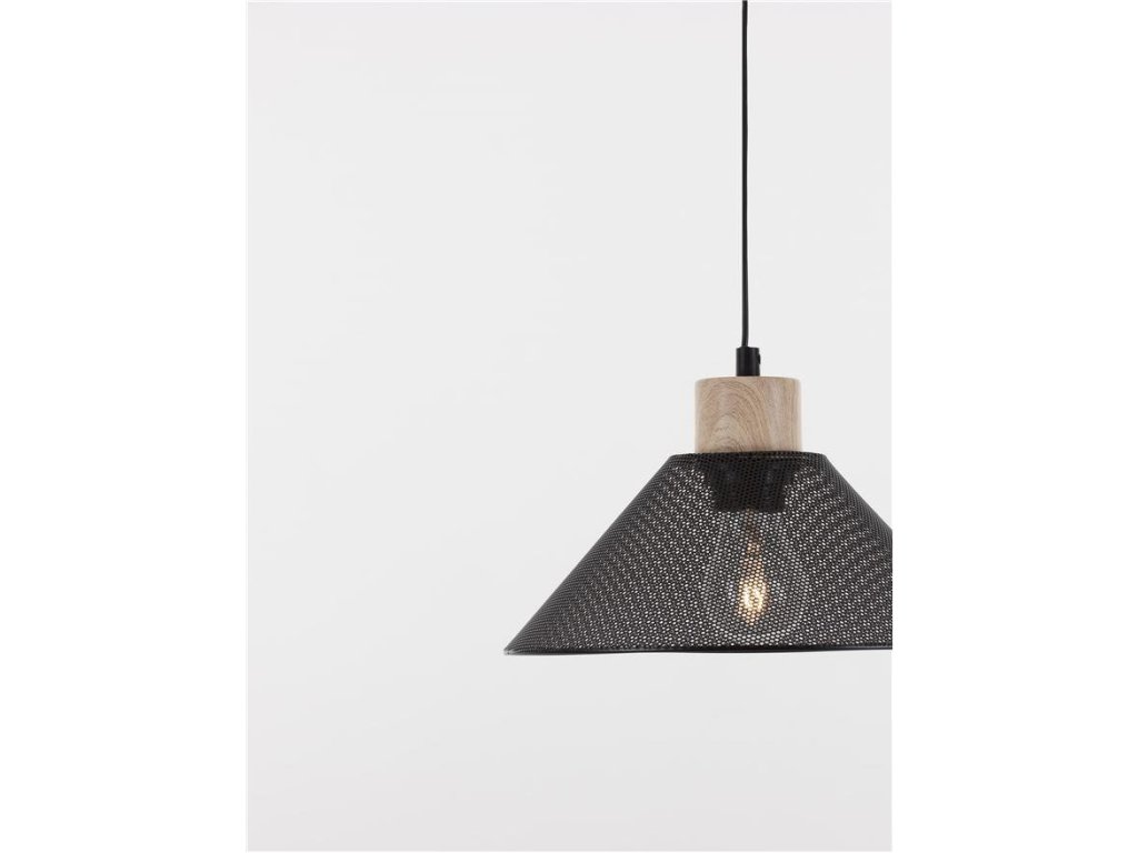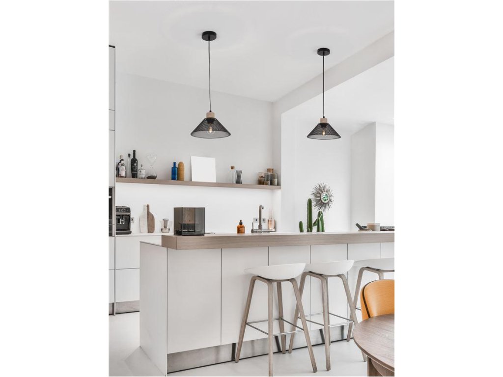 Závěsné svítidlo IAN matný černý kov přírodní dřevo E27 1x12W