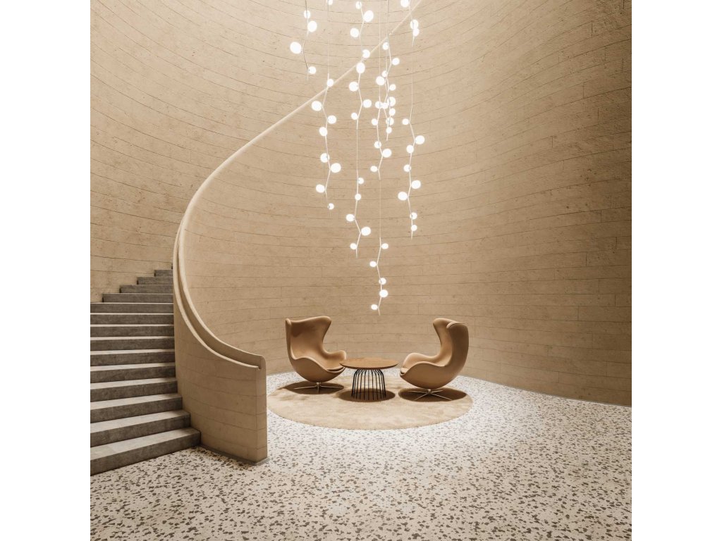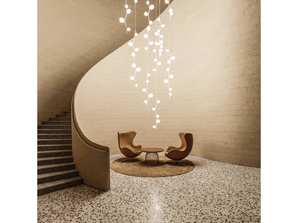 Kolekce IVY, inspirovaná přírodou a její všestranností, nabízí téměř nekonečné možnosti jedinečné světelné kompozice. Svítidla, zavěšená na speciálních koaxiálních kabelech, se snadno instalují a kombinují díky modulárním komponentům. Variabilní a precizní v řemeslném zpracování až do nejmenších detailů, jsou dodávány ve třech velikostech buď v matném světle růžovém, opálovém nebo kouřovém skle. Výrazné ručně foukané skleněné prvky mohou být uspořádány do zdánlivě nekonečné palety kompozic a právem si drží své místo mezi uměleckými řešeními osvětlení na míru, ideálními pro veřejné prostory, hotely, kanceláře a mnoho dalších projektů.
