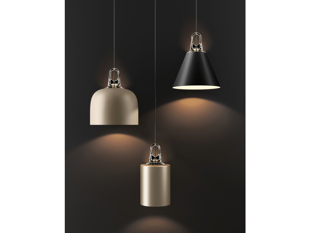 Každé svítidlo se vyznačuje výrazným tvarem stínidla a možností volby barevných kombinací. Dvě povrchové úpravy stínidel lze libovolně kombinovat se dvěma odstíny závěsného háku, což umožňuje vytvořit osobitý vzhled přesně podle vašich představ.