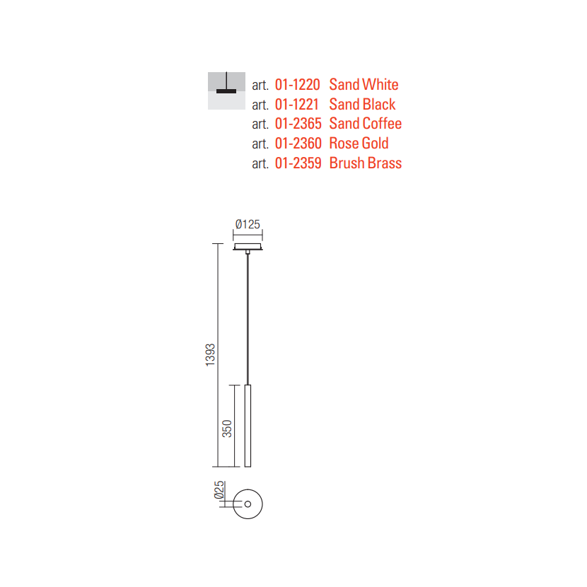 | Závěsné LED svítidlo KANJI ø 2,5 cm, v. 75 cm |